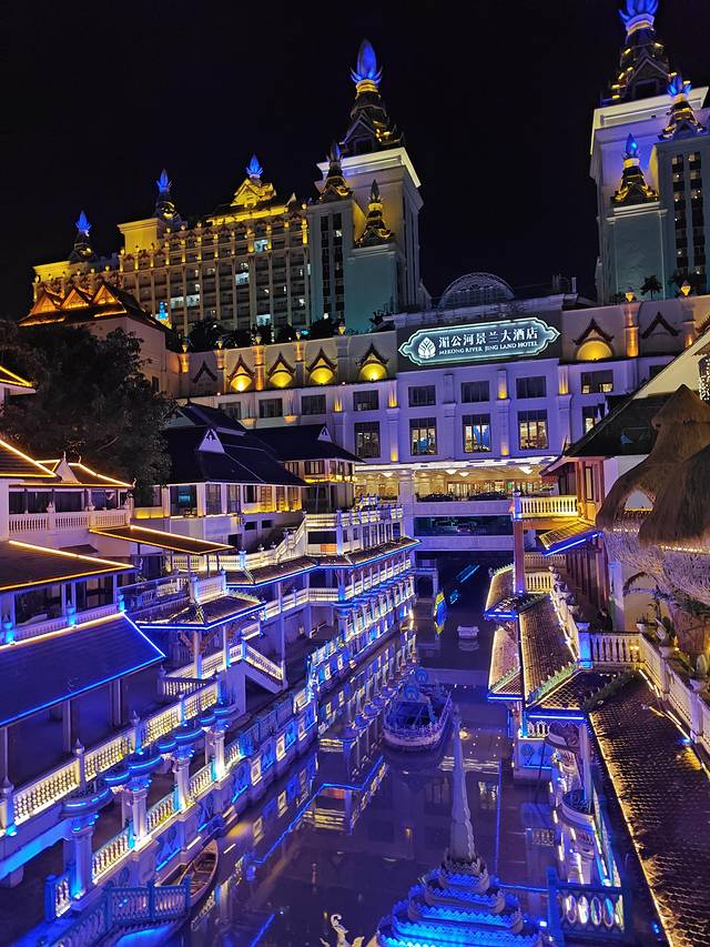 这次行程定到的性价比之最了。酒店很气派,在整个告庄算一个地标性建筑,而且地理位置优越,下楼就是繁华的商业街,还有一个挺有规模的超市也是景兰出品。我们的飞机到达已经是晚上八点了,酒店派了接机。虽然到达时已经晚上快九点了,但是周围的环境一点也不觉得晚,还在蹦傣迪的蹦傣迪,泼水的泼水。好像睡觉跟他们无关。