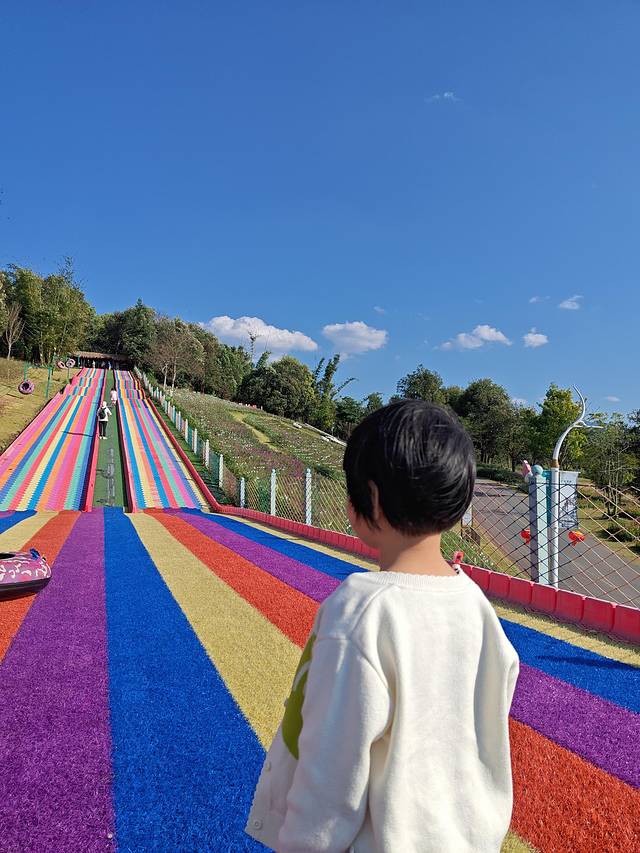 这个彩虹滑道太高了,柚子肯定会害怕。
