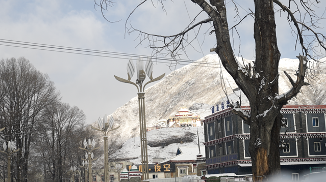原路下山,这时候天已经黑了。好在对向没有来车,但下山的时候还是要注意慢行,谨慎驾驶。花了一个半小时我们才到木雅大寺,这时山下已经在下雪了。