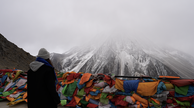 我们去到的时候已经云雾漫天,没办法看到日照金山。但坚持爬上去才发现,雅拉雪山就在你的面前,真的是距离非常近的一个观景平台,雪山扑面而来的压迫感太震撼了。