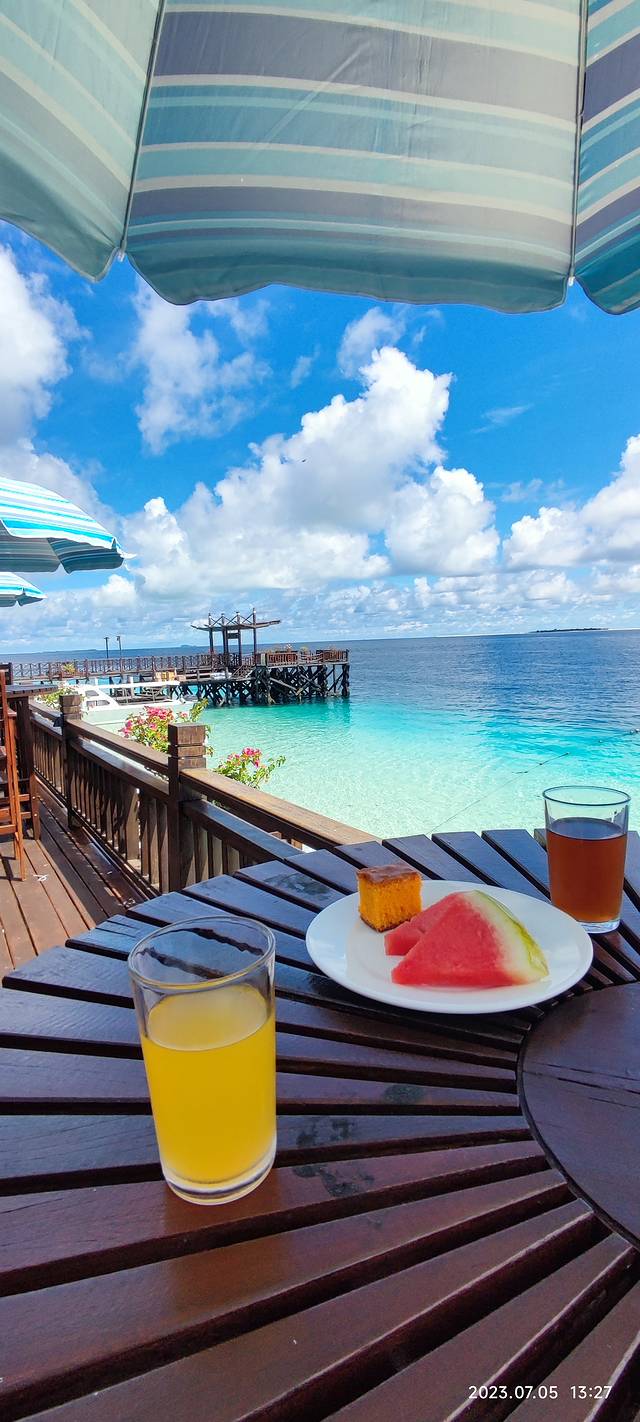 虚惊一场结束后,没有什么比一顿早餐更能填补后怕的了。岛上的管家一脸严肃的过来问我们当时的情况,意思是责备我们没有遵守浮潜的时间规定。我表示了歉意,但对于岛上的安全设施还是提出了意见,尽管有浮潜时间的规定,出于安全考虑,还是应该告知岛上的涨潮信息,或者说服务更细致一些。