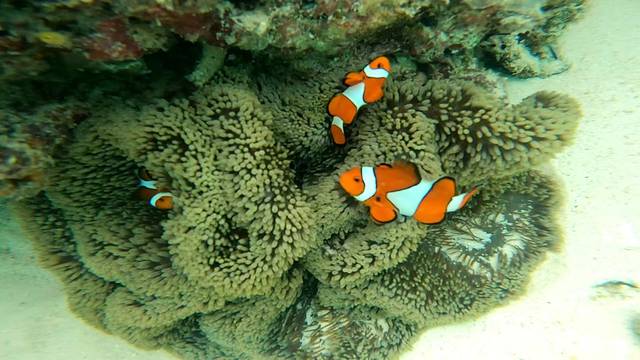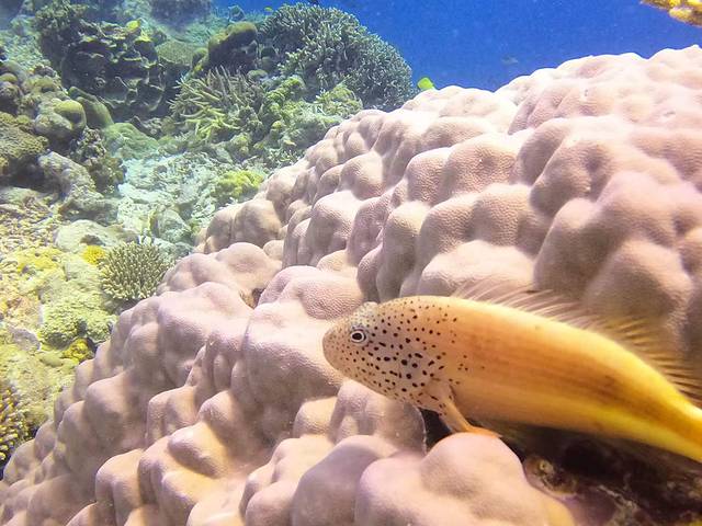 吃完早餐已经临近中午,看着已经有人冒着小雨开始浮潜了。气温合适,风浪小了。我们也迫不及待的换上衣服,前往拖尾沙滩那边。不得不说马达京的浮潜资源实在太棒了,浅滩就有大群的珊瑚,小丑鱼弯腰就能在水下清晰的看见,天然水族箱。大家玩得险些错过午餐时间。
