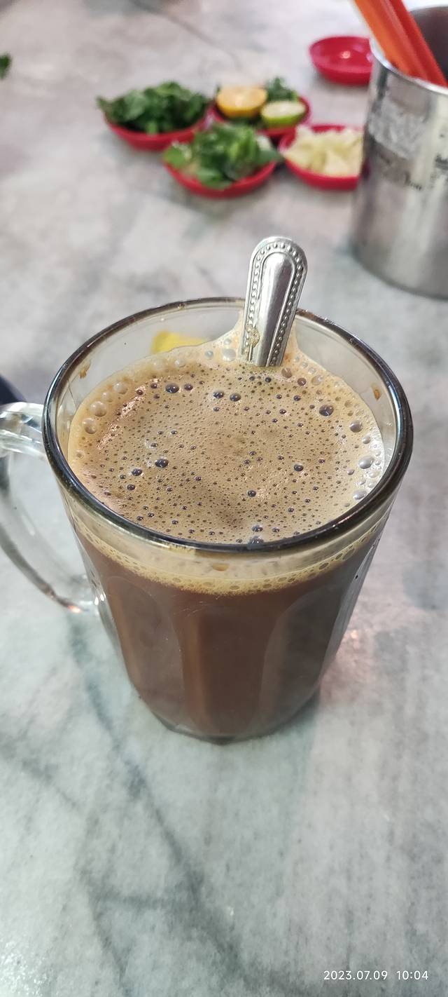 Google找了家当地评价较高的早点摊,就是位置有点远,如果自驾来沙巴的朋友,我是极力推荐来试试这家忆香海南牛什,这名字听起来就是海外华人的感觉。门外排队的食客络绎不绝,我们幸运等到一家人刚用餐完毕的台面。酸梅汤和冰冻美式也很好好,叨沙牛杂面真是非常超值的体验。整体物价也不贵,服务员是华人,中文无障碍。