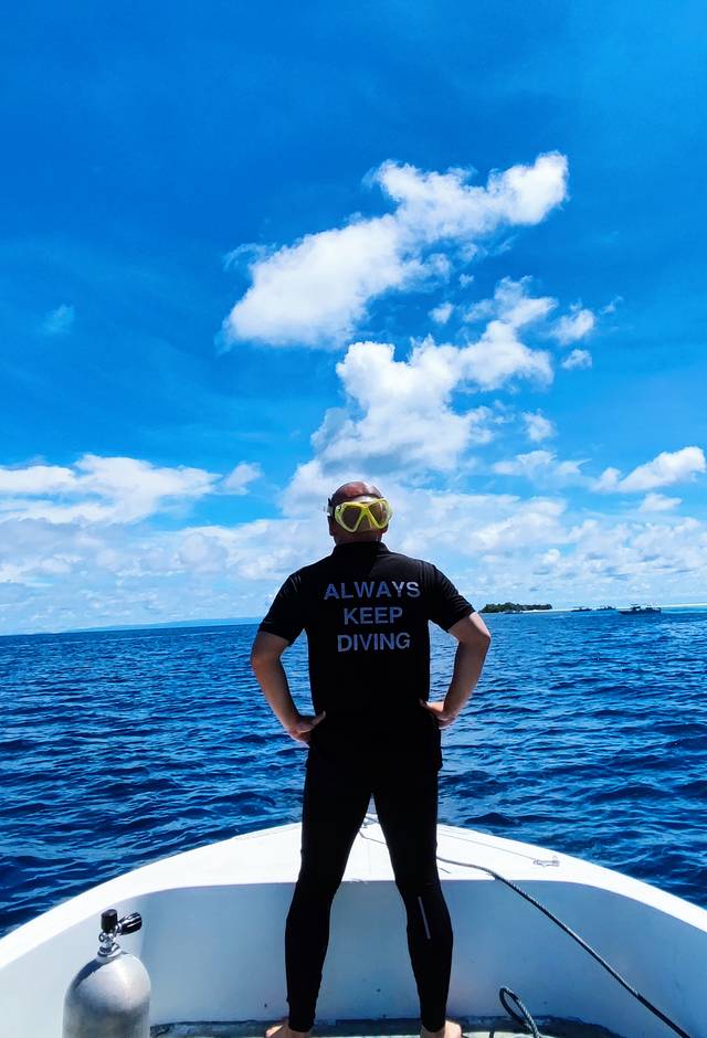 见了我今天的潜导Nuel,挺活泼的小伙子,总是不紧不慢像微醺后的状态。介绍了下今天的行程,这才算是正式开启了这次的潜水之旅。