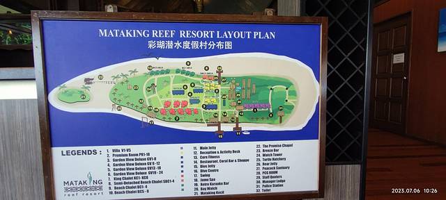 登岛仪式如同大多数海岛酒店一样,欢迎冰饮,吉他弹唱。行李会有工人一起搬运到大厅,因为要到2点才能入住,所以之前的时间就是上个服务讲解和自助午餐。马达京的登岛讲解还是比较重要的,告诉游客酒店的各项设施以及注意事项。因为是靠近菲律宾的边境海岛,岛上还有持枪的驻军。也正是因为此刻没有仔细听介绍,导致给后续的行程埋下了危机。