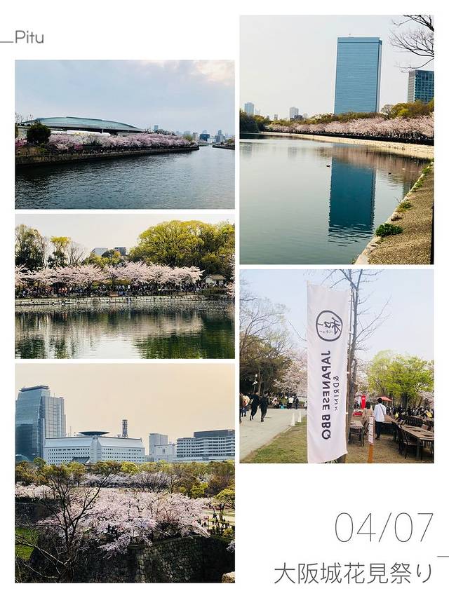 由于之前已经参观过大阪城里面,这一次我选择在城堡周边欣赏美丽的樱花景色。