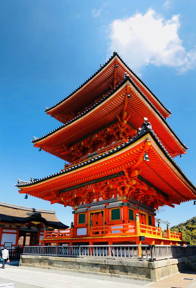 清水寺:作为京都最古老的寺院,清水寺的建筑风格独特,尤其是悬空的清水舞台,是日本国宝级文物。位于山上,所以看夜景也不错。