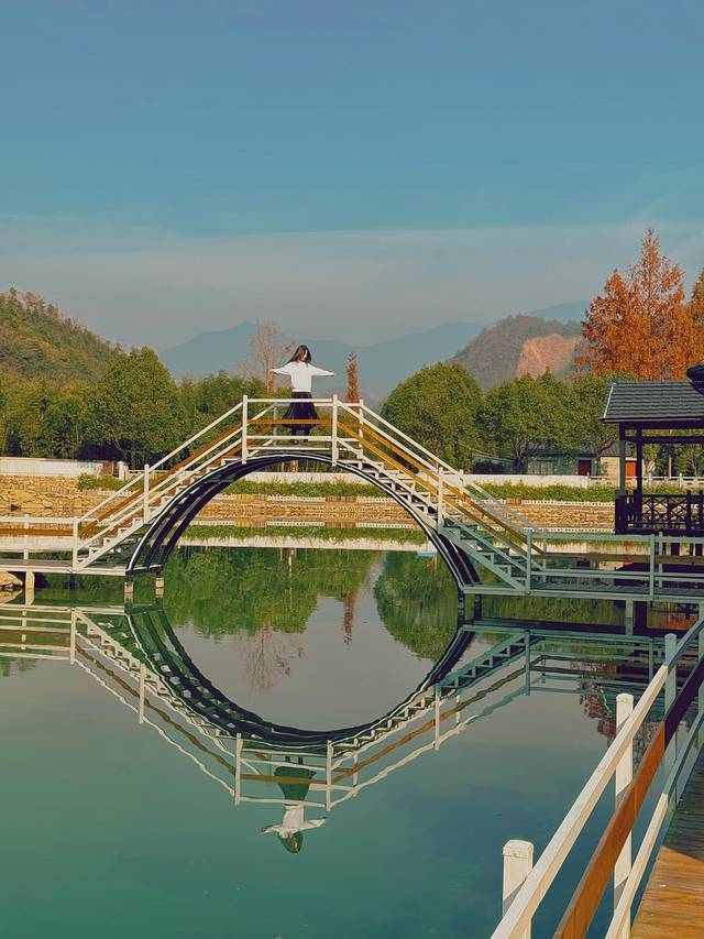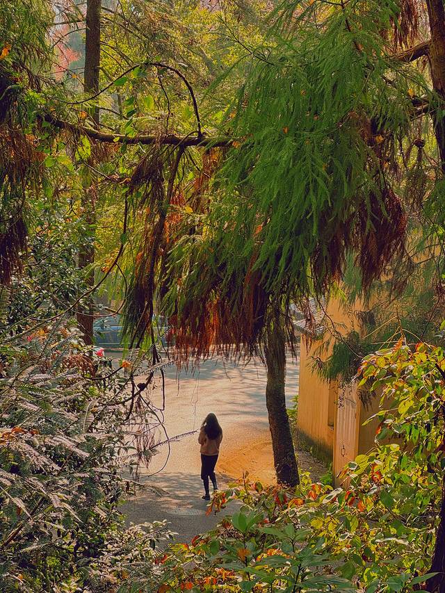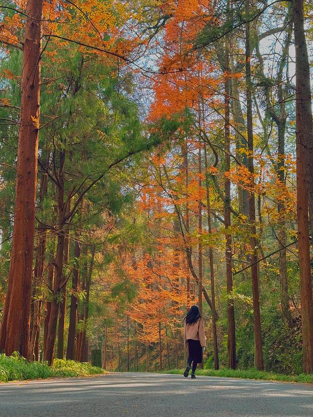 就可以到这样一个被红色柳杉、金黄银杏包围的山林🏔️🌊