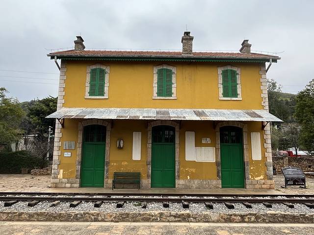 走过小街,穿过几棵老树,就到达了《芳华》取景地,一条长长的铁路,铁路两侧有站台,黄色墙体,绿色座椅。看着这个场景,脑中突然浮现出刘峰和何小萍坐在椅子上对话的场景。