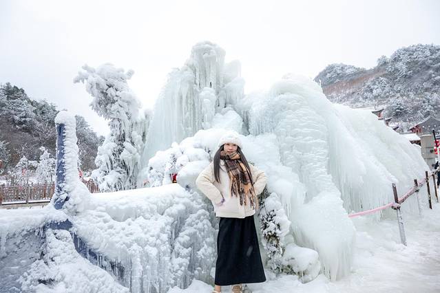 灵官庙一旁的冰瀑也是嘎嘎好看,尤其是光线好的时候,还会泛着一点点微蓝,出片得很!
