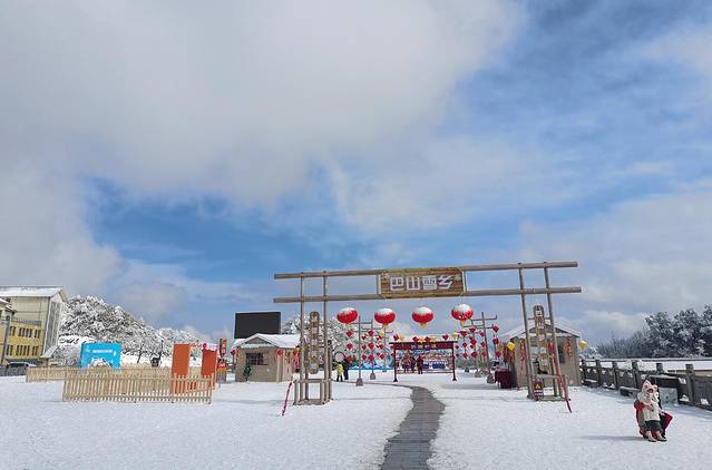 最后到达罗盘顶,第一个呈现在我们眼前的景点是巴山雪乡,这里面有众多打卡装置和好玩的小项目,小朋友应该很喜欢。