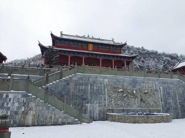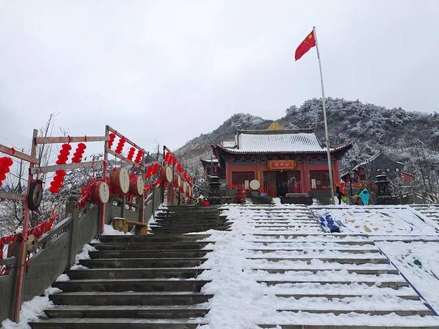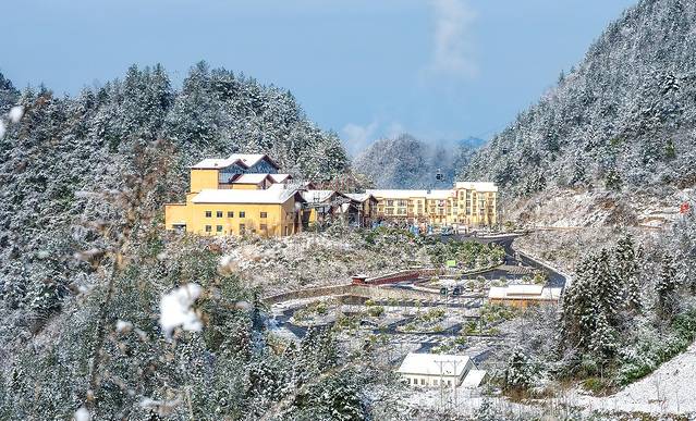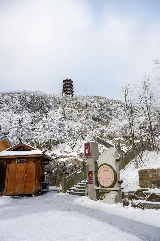 罗盘顶的最高点状元楼,则是赏雪景的好地方,从高处往下俯瞰,白雪皑皑的山峰、银装素裹的树木,以及被雪覆盖的道路,共同构成了一幅美丽的冬日画卷。