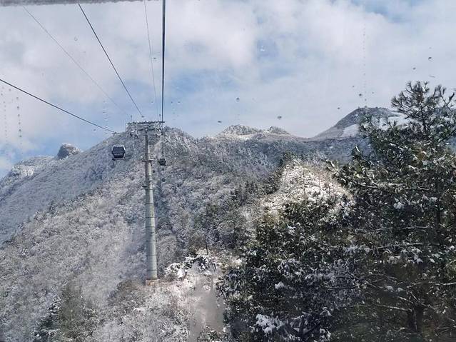 随着索道高度的不断升高,脚下的景观从点点白雪变成了白茫茫一片,我们仿佛置身于一个童话般的世界,处处都充满了神秘与奇幻。