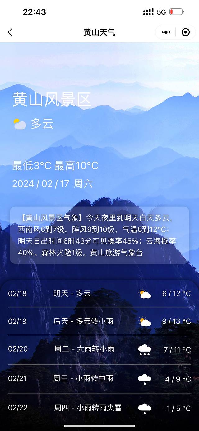 关注“黄山旅游官方平台”公众号看黄山天气比看黄山市的天气准很多,据观察也经常预报变动。买票预约也在这儿