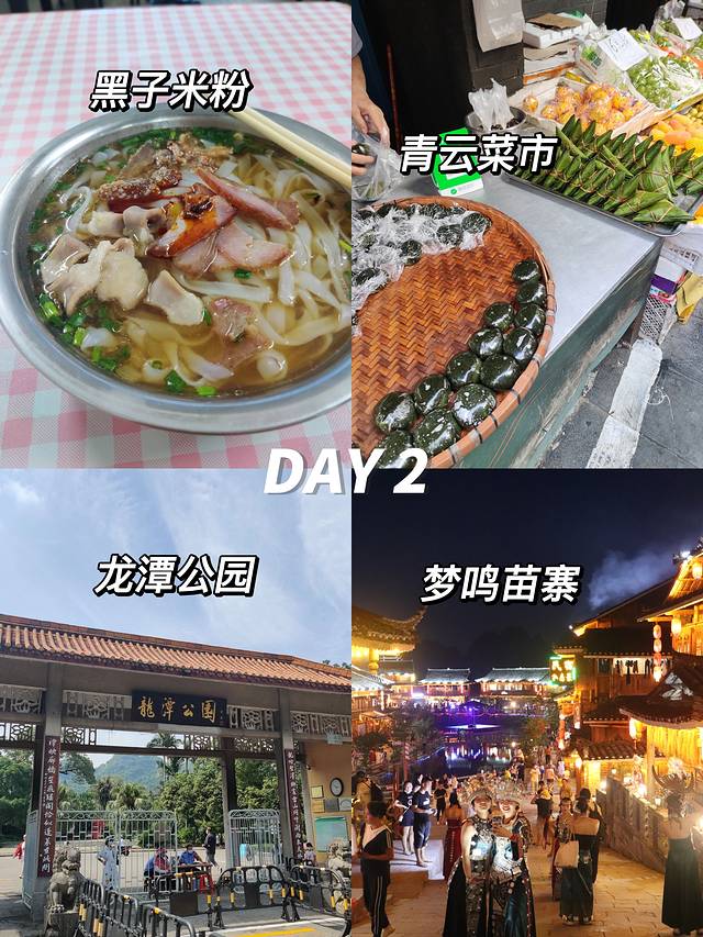第二天:📍黑子米粉(早餐)——📍青云菜市——📍龙潭公园——📍梦鸣苗寨