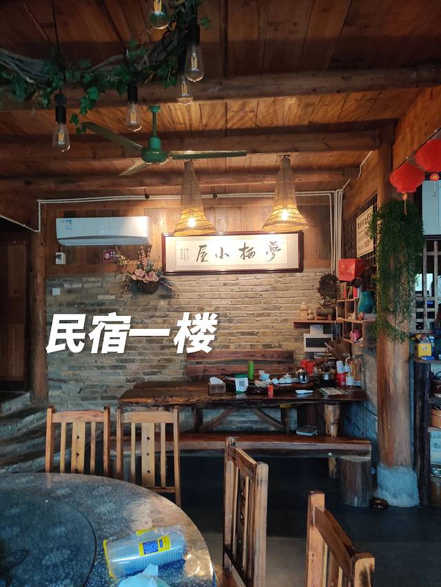 ✅设施:这间民宿有几层,第一层用作餐厅,主要卖特色菜。往上就是住宿,民宿偏民族风情,材料多为砖头和木头,房间里提供基本的洗漱用品,厕所是磨砂玻璃那种,电器基本就是一个烧水壶和空调。