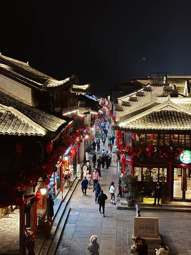 📍临海紫阳街:晚上的紫阳街是灯火宋城的模样,工作人员都穿着古装给大家沉浸体验。紫阳街这里是台州府城的兴善门,夜间可以不用门票到长城上俯瞰老街,当然更重要的是,晚上在这里可以品尝到各种糯叽叽美食。