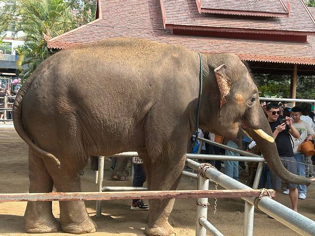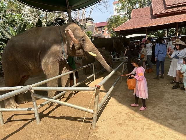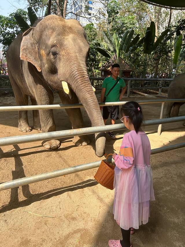 吸取了初二的失败经验和初四的成功经验,初五早上六点半早早起床出发去野象谷,自驾40分钟左右到达景区南门,南门不让停车,后在工作人员的引导下将家人放在了景区南门,自己把车停在北门路边,乘坐着村民的摩托车到达南门会合,给了村民10元摩的费用。从南门走上去,一路人很少,孩子和孔雀拍了合影,看了日出,到达山顶后乘坐索道下山,下山途中很幸运的看到了丛林中的野象。下山后才10:50,赶着点在南门附近看了大象演出,再次购买食物喂了大象。观看了蝴蝶谷等景点,步行到达北门,取到车后在野象谷高速口附近找了个农家乐吃了中餐。