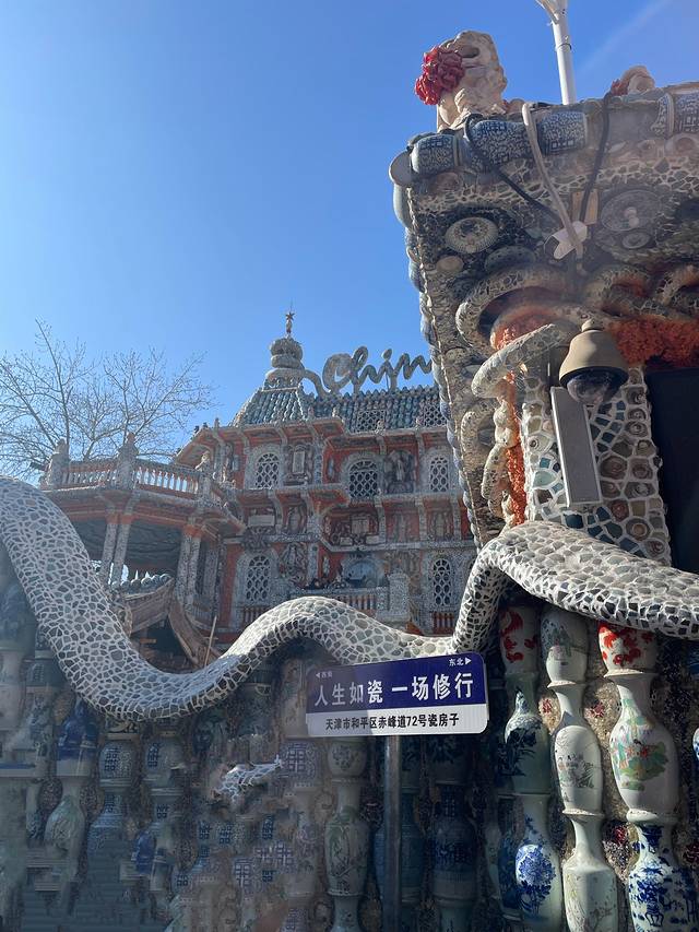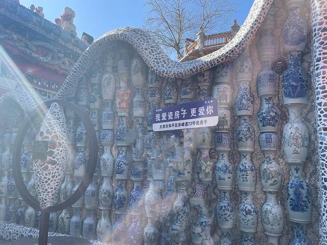 瓷房子是一座动用了无数私藏古瓷器、汉白玉石雕、水晶、玛瑙、古董装饰而成的法式建筑。房子的墙上密密麻麻贴满了精美的中国古代瓷器,庭院和楼内堆满了古董,铺天盖地的瓷器古董常让初到瓷房子的游客眼花缭乱。