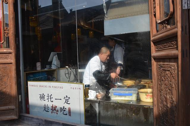 来 平遥 必吃的就是炒碗托了,这是一家老字号早餐店董记炒碗托,在这里可以现场看到厨师们在炒碗托,一般游客多的时候也会站在门外参观。