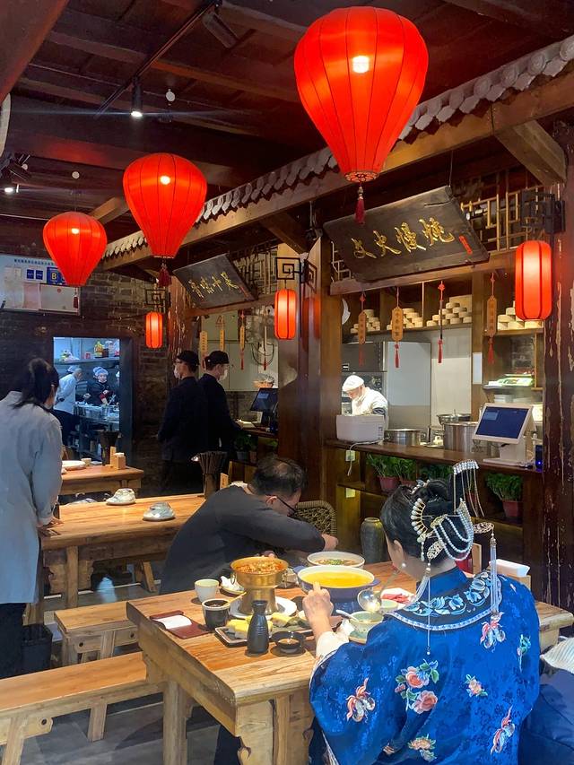 饥饿总是来的很快,按照攻略上的美食推荐,第一站我来了南大街“洪武记饭店”,这个地方很好找,就在市楼附近,很远就能看到大厅的红色灯笼和熙熙攘攘排队吃饭的人群,从外也能看到明档做饭的厨师们。