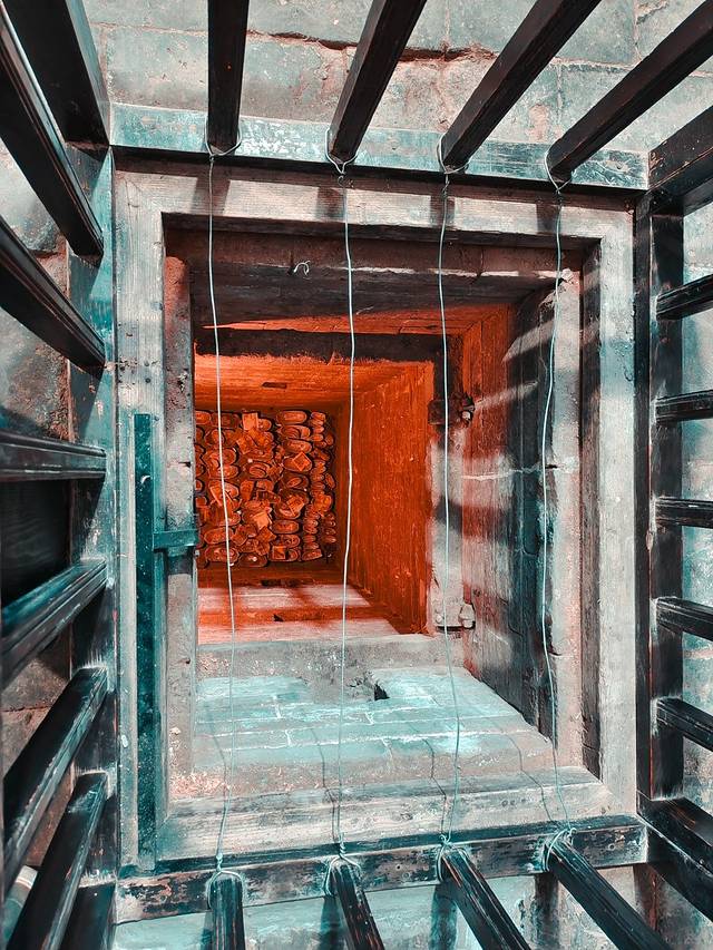 协同庆票号的设置非常的有安全防范意识,从正门进入,走过一个小桥进到后院,往左拐曲曲折折的,上下两院有一个高度差,需要下楼梯才行。绕过一个隐秘的城墙才能找到地下金库的入口,协同庆的创造者在金库安全方面独具匠心,非常有警惕性。
