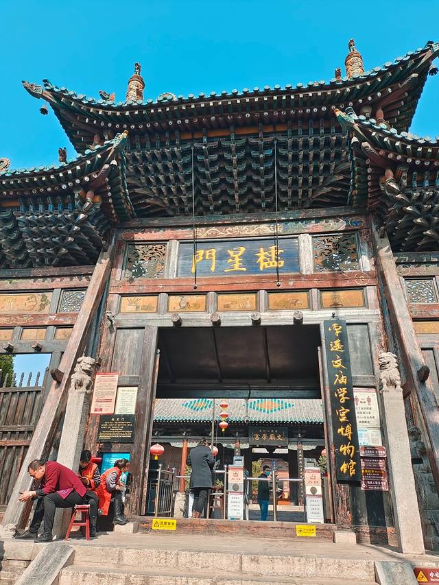 去文庙的一大看点就是整体建筑,距今已有800多年的历史,至今保持原貌,庙宇规模宏阔,总面积35811平方米,这是我国现存最悠久的文庙,也是保存最完整的,还能看到 中国 最大的孔子及儒学先贤塑像群。
