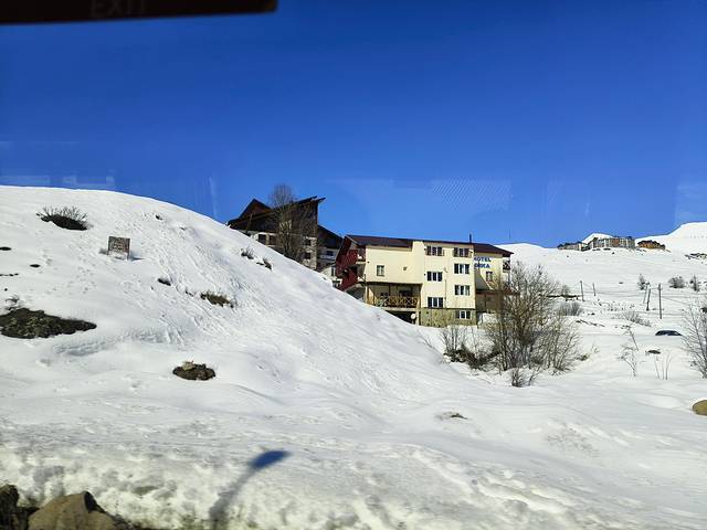 从首都第比利斯启程,我们一行人在向导的带领下,驱车驰骋在蜿蜒曲折的山路上。沿途的雪景如画,雪山与森林交相辉映,湖泊镶嵌其中,犹如一幅壮丽的画卷。