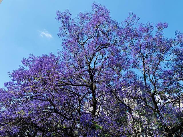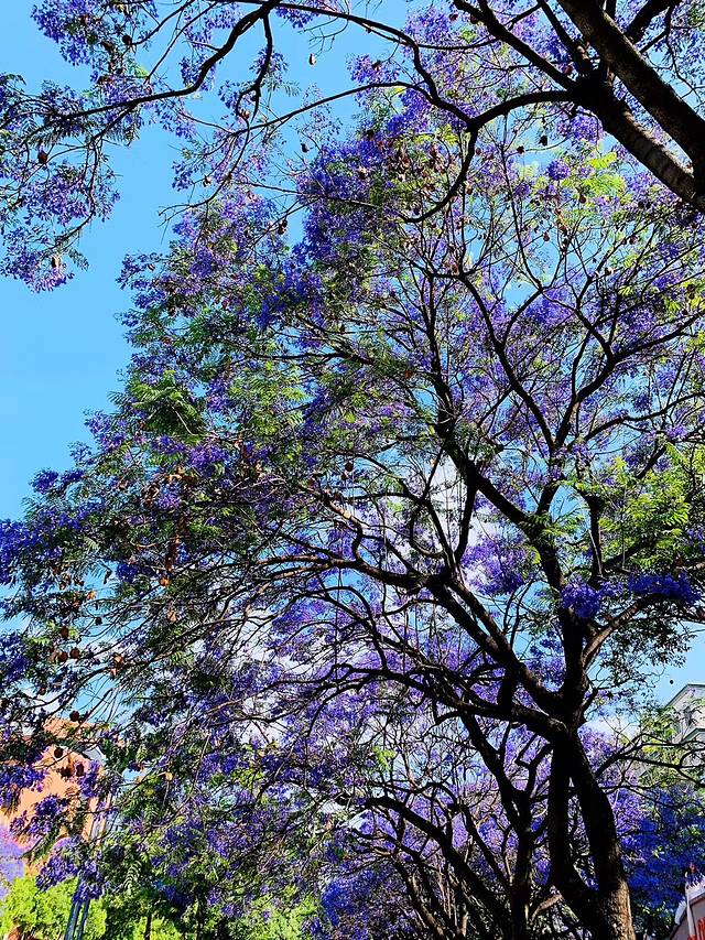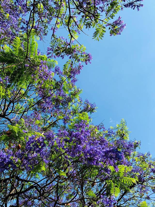 昆明的蓝花楹美到让人失语,紫色的花瓣雨浪漫至极,茂密的花朵像城市中的紫色云朵