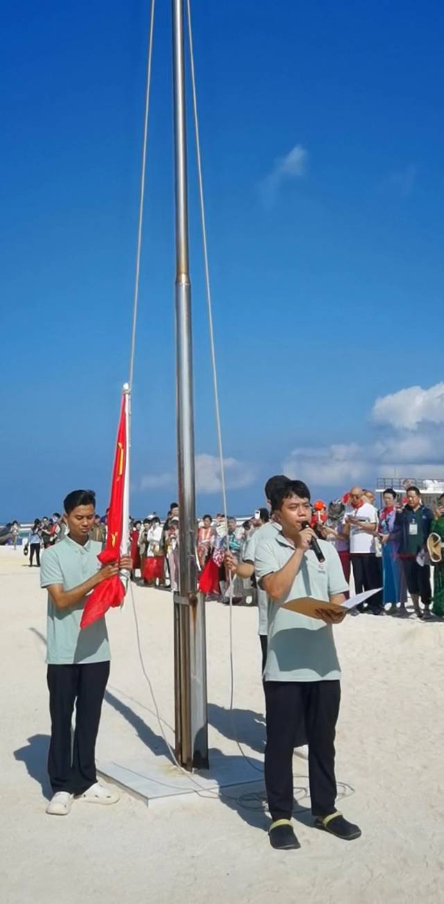 上午十点举办升旗仪式,由领队们充当了升旗手,仪式庄重又严肃