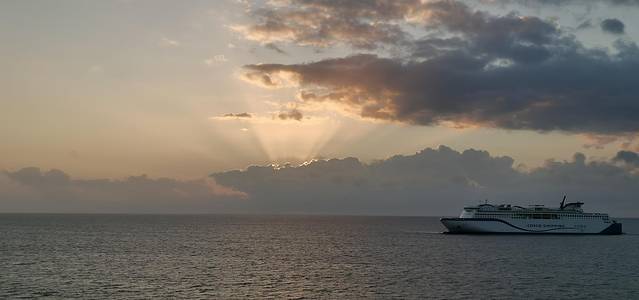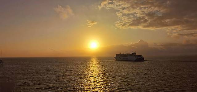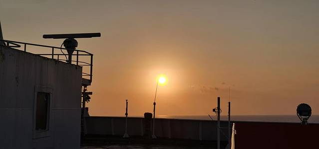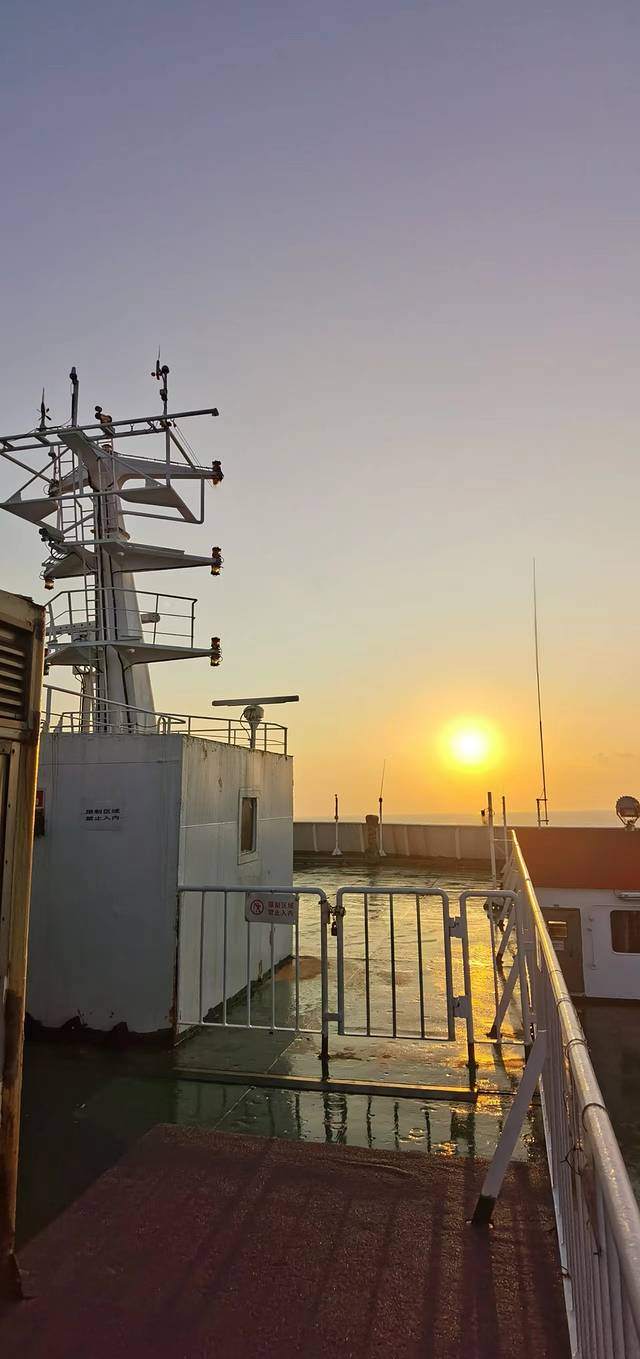 今天是农历的正月十五,一早晨起来,先去甲板上看日出