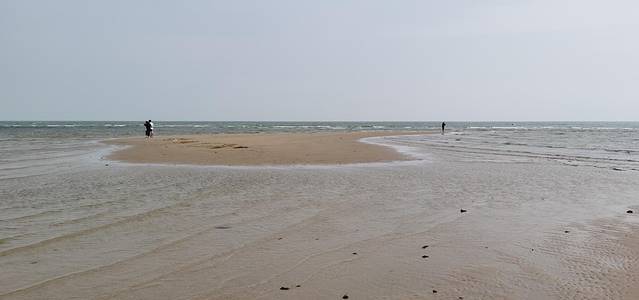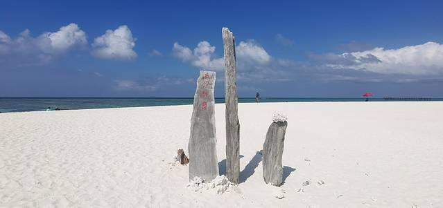 这片沙洲是琼州海峡和北部湾的合水线,琼州海峡潮流自东向西,北部湾潮流自北向南在此汇合,这里还拥有一个神奇的刻度,北纬20°13′14″