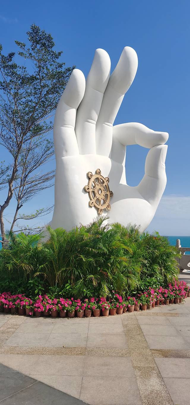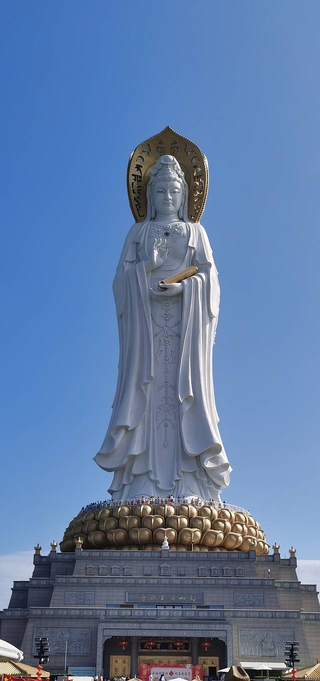 这是一座三面观音菩萨,跟着人群乘电梯到上面,摸了一下菩萨脚