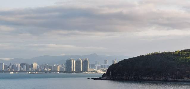 早晨7点50,看见凤凰岛帆船酒店了,快到码头了