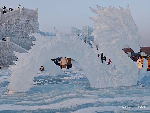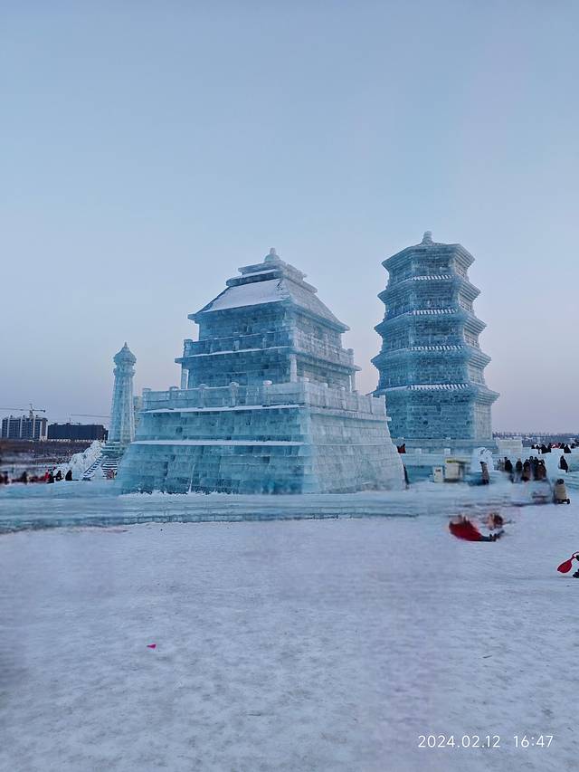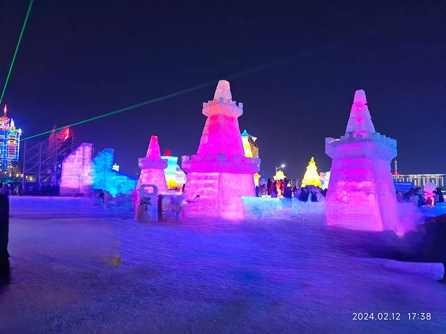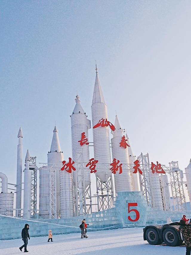 长春冰雪新天地就在天定山滑雪场边上,从滑雪场出来以后我们就直接到了冰雪新天地这里,游玩路线:白天可以看冰雕,晚上可以看冰灯,推荐项目:晚上的冰灯推荐看一下,蛮漂亮的。还有那个大滑梯可以玩一下