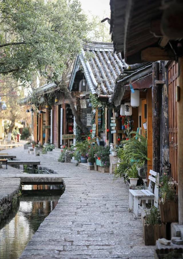 束河古镇,纳西语称"绍坞",因村后聚宝山形如堆垒之高峰,