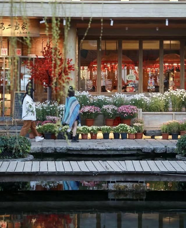 飞花触水:古镇蕞美的地方之一,河流两岸鲜花很合适拍照