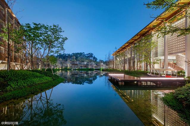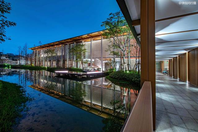 酒店坐落在岭南绿洲与湖泊交界之地,毗邻松山湖,远衔青山翠峦,博采古村遗韵,于人与自然的对话中构筑一隅东方灵感庭园。主体建筑围绕一弯内湖而立,其间点缀着各色植被,让室内空间皆能尽览山水绿意。
