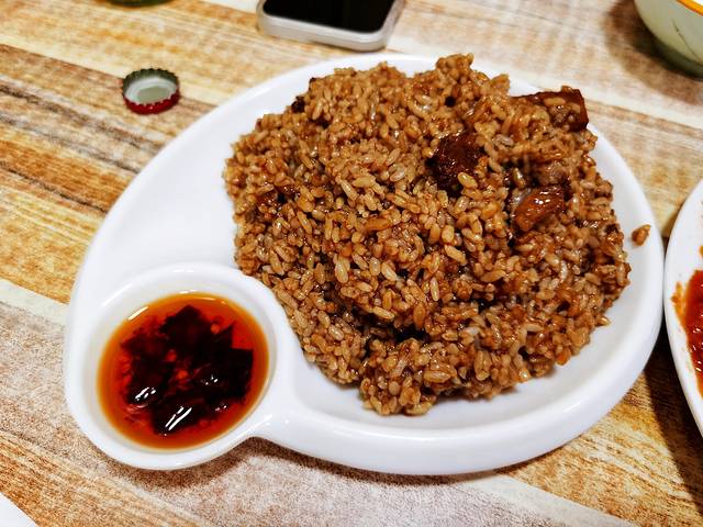 桌桌必点的牛肉烩饭,里面的牛肉没有几块,炖得软烂入味,每一颗大米都吸满了汤汁,再配点辣椒油,那叫一个香呀!