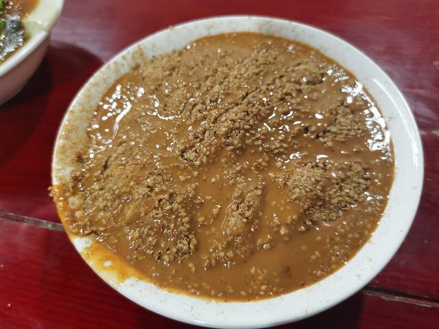 面茶,天津传统早点!作为一个麻酱爱好者,我觉得是很好吃的!面茶不是茶,下面是用糜子面搅成的糊状,上面淋上厚厚的芝麻酱和芝麻,吃的时候一定要一起吃,超级好吃,一口下去咸香无比!