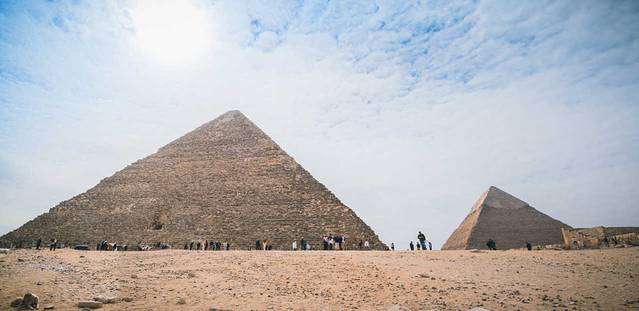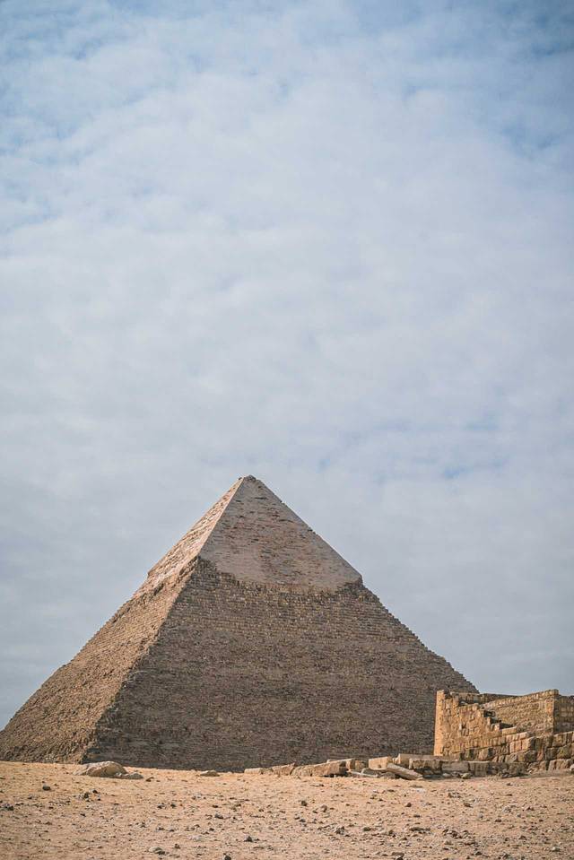 现如今表面的石灰岩早已风化剥落,只剩哈夫拉金字塔的塔顶还保留着部分原貌。
