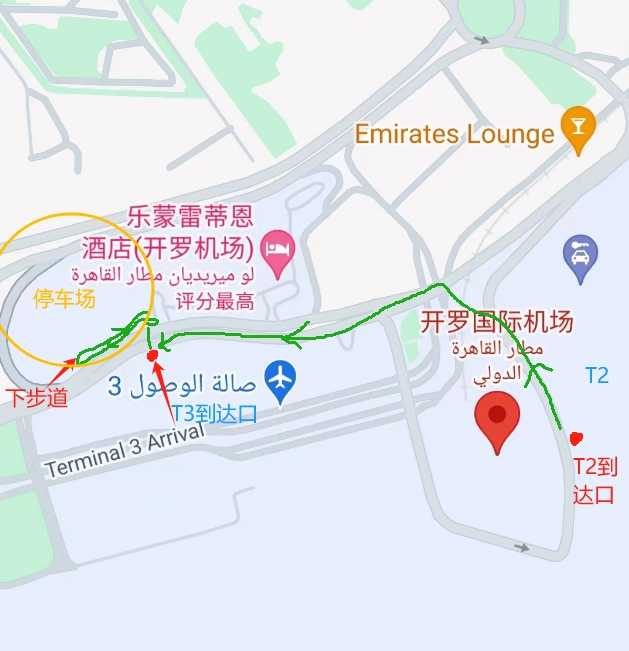 下图,过马路到对面,一个明显缺口,下步道,到达T3停车场