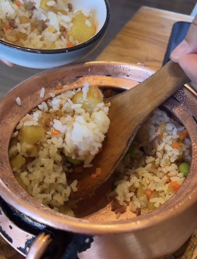 美食:点招牌小锅饭,有一点点像锅巴饭的感觉,里面有煎过的土豆子和肉,还不错!吃起来口感很好,特别香!