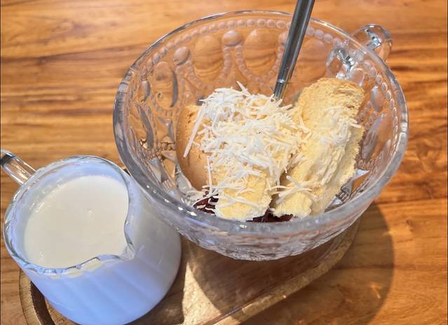 椰香泡鲁达口感微甜,奶香味很足,我喜欢这种不腻!