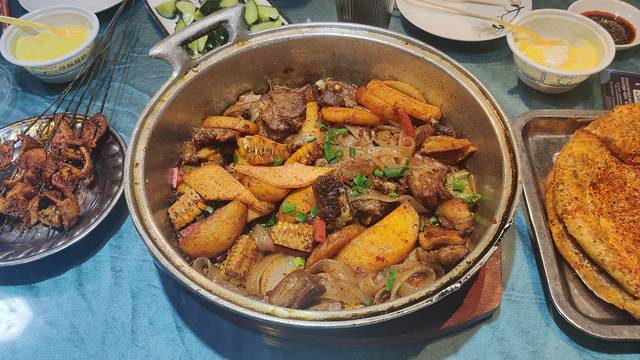 手抓肉很嫩,是热食,搭配蘸料其实味道还不错,就是感觉羊肉本味有点寡。其它的酿皮、面片、炸土豆之类的菜都相当一般,真来的话建议只吃手抓。