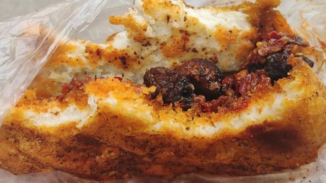 量较少,煎得很透,切面焦脆,大概是加了麻油,有一点麻麻的口感,羊膻味比较重,但很香,并不令人反感。