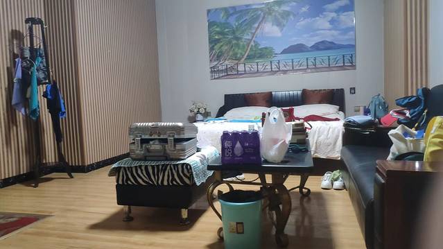 房间内干净整洁,配有空调。但是缺少桌椅,放东西不太方便。