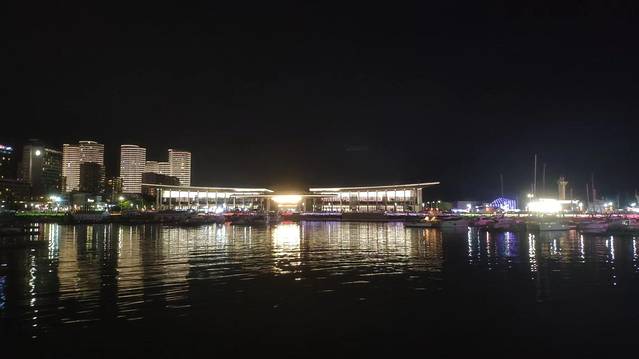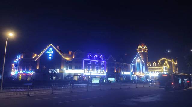 住宿在这一片夜色里,如梦幻城堡哈,过马路对面就是公交站、沙滩、海岸。