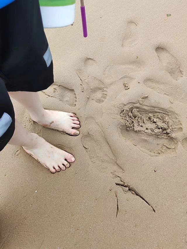晚上,又来到山海天浴场沙滩,玩沙子到20:51方才回去休息。
