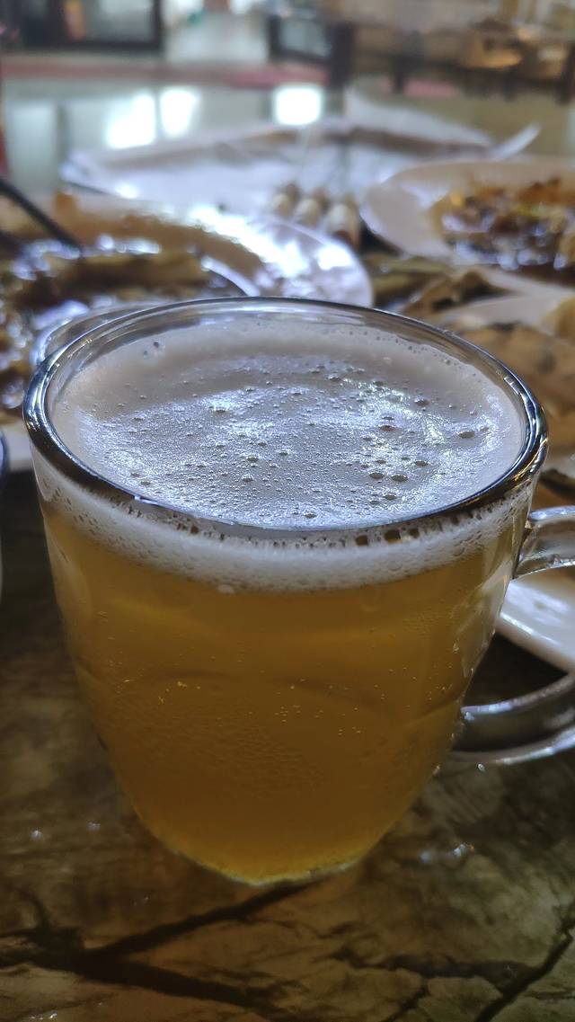 再来三升鲜啤,爽啊。媳妇也忍不住嘬上几口。